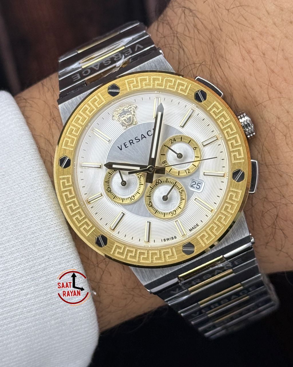 ساعت ورساچه مردانه کرنوگراف بند فلزی دو رنگ طلایی سیلور