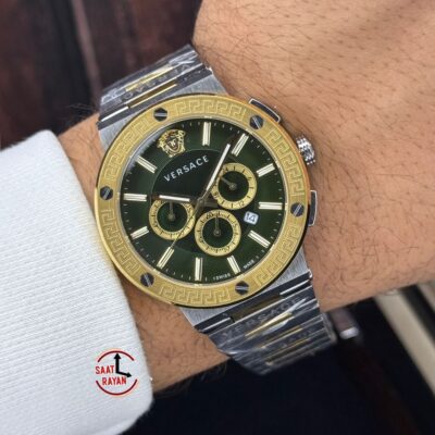 ساعت ورساچه مردانه کرنوگراف بند فلزی دو رنگ طلایی سیلور
